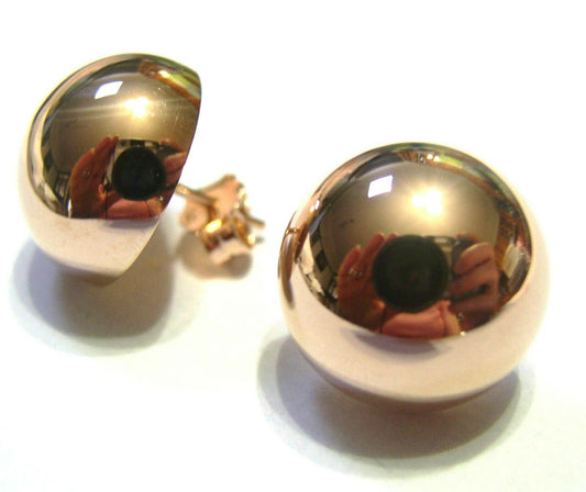 Genuine New 9ct Yellow, Rose or White Gold 18mm Half Ball Stud Ball Earrings