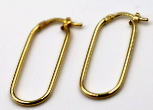 Genuine 9ct 9K 375 Yellow Gold Fine Long Oval Hoops Earrings