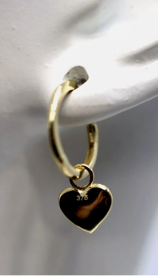 Genuine 9ct 375 Yellow Gold Hoop Small Huggies Heart Earrings