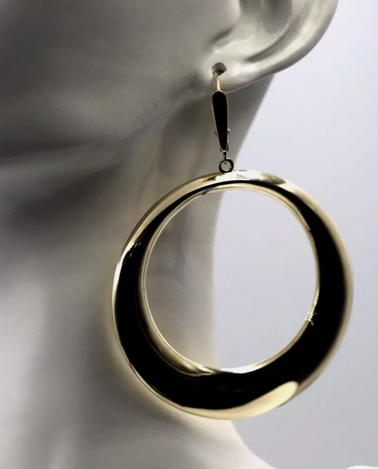 Genuine 9ct 9k Yellow, Rose or White Gold Huge Oversized Hoop Disc Continental Hook Earrings