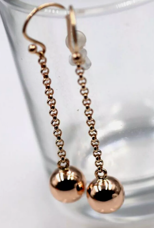 Genuine New 9ct 9Kt Rose Gold 10mm Ball Drop Chain Stud Earrings