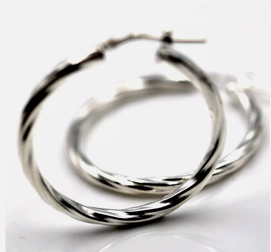 Sterling Silver 925 34mm Large Round 3mm tube Twist Hoop Earrings