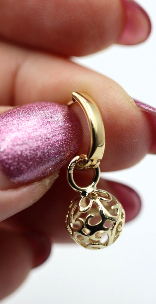 Genuine 9ct 9k Yellow Gold Hoop 10mm Filigree Ball Huggies Earrings