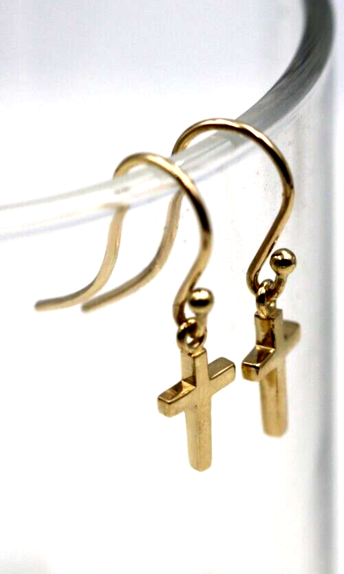 Genuine 9ct 9k Solid Delicate Small Yellow, Rose or White Gold Dangle Cross Earrings 10mm x 6mm