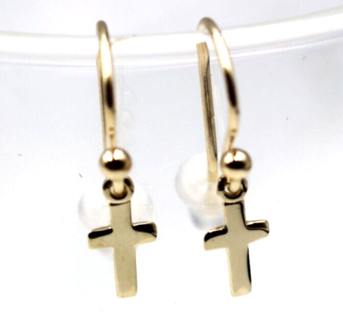 Kaedesigns 9ct 9k Solid Delicate Small Yellow, Rose or White Gold Dangle Cross Earrings 7mm x 5mm Cross