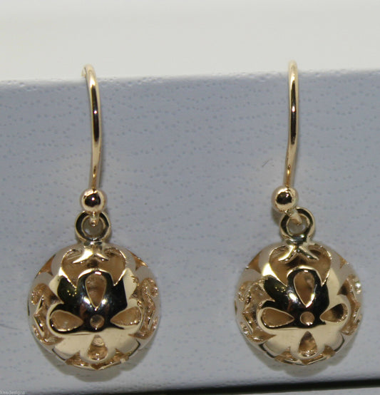 Genuine New Heavy 9ct Yellow, Rose Or White Gold 8mm Euro Ball Drop Filigree Earrings