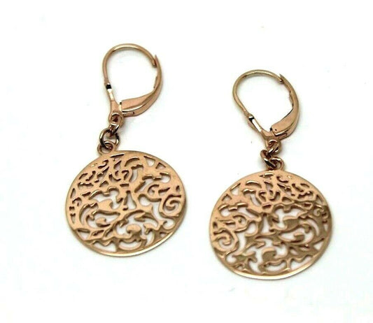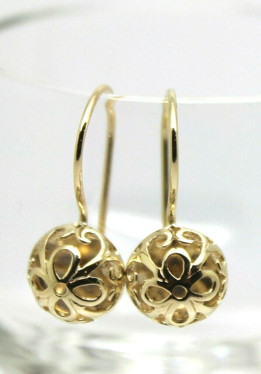 Genuine 9ct Yellow, Rose Or White Gold Flat Filigree Drop Round Closed Hooks Earrings