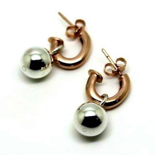 Genuine 9ct 9k Rose Gold & Sterling Silver Fancy Ball Earrings