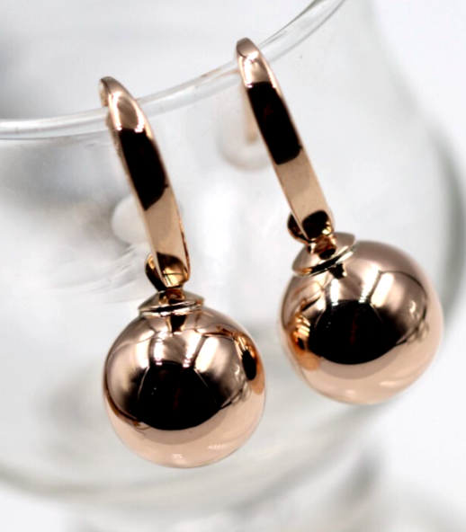 Genuine Large 9ct Rose & Yellow Gold Spinning Belcher Ball Earrings