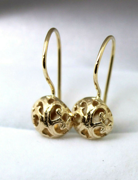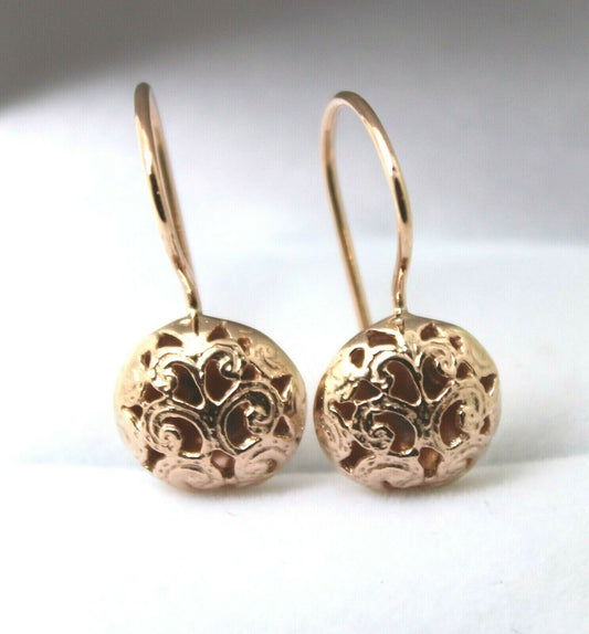 Kaedesigns New 9ct Yellow, Rose or White Gold 10mm Half Ball Hook Filigree Earrings