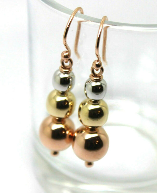 Genuine 3 Ball Three Tone 9ct Rose, Yellow & White Gold Ball Drop Ball Earrings