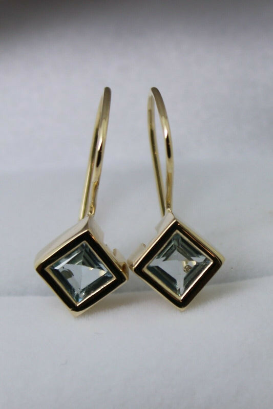 Kaedesigns New 9ct 9k Yellow Gold Light Blue Stone Earrings