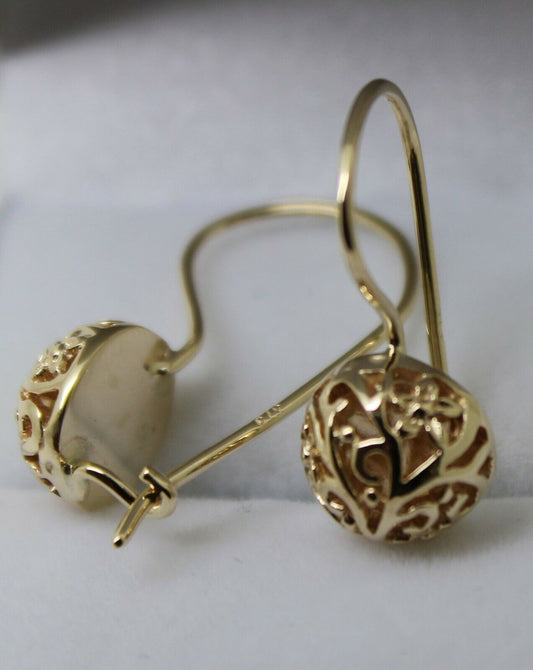 Kaedesigns 9ct 9k Yellow, Rose or White Gold 10mm Full Ball Hook Filigree Earrings
