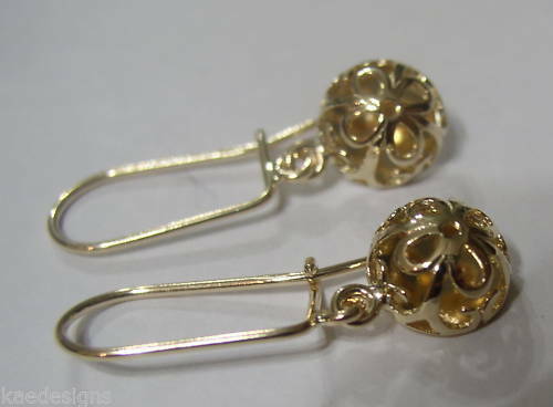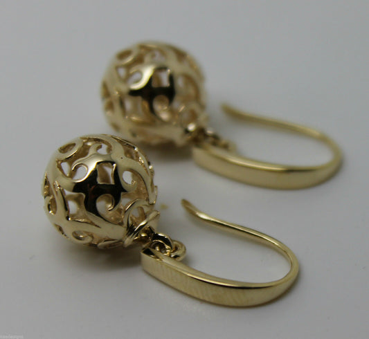 Genuine 9ct Yellow, Rose or White Gold Large Heavy 12mm Euro Ball Drop Hook Filigree Earrings