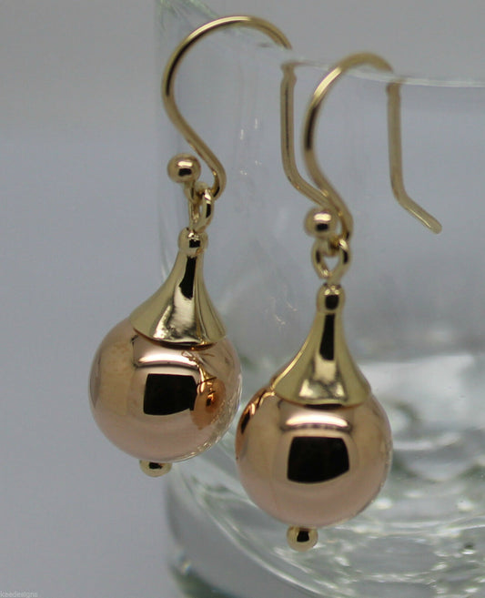 Genuine New 9k 9ct Rose & Yellow Gold Spinning Belcher Ball Earrings