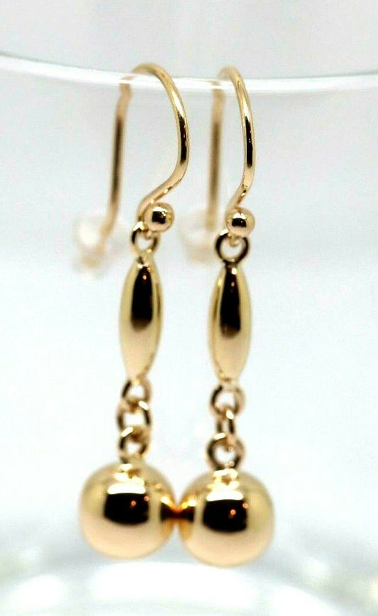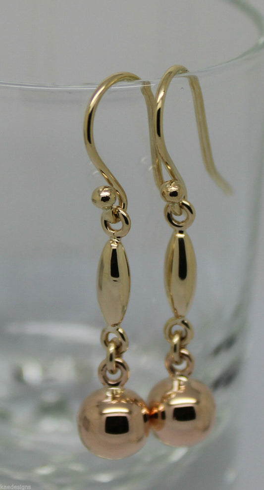 Genuine 9ct Yellow & Rose Gold 8mm Ball Long Drop Earrings