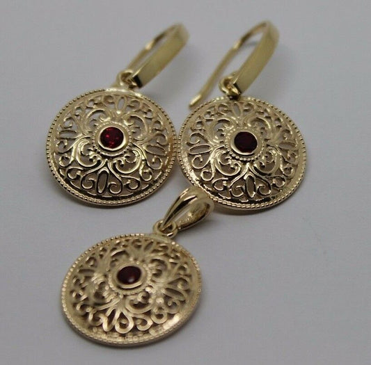 Kaedesigns Genuine 9K 9ct Yellow, Rose or White Gold Filigree Ruby Pendant & Earrings Set