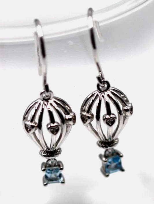 Sterling Silver 925 Topaz + Diamond Set Hot Air Balloon Earrings