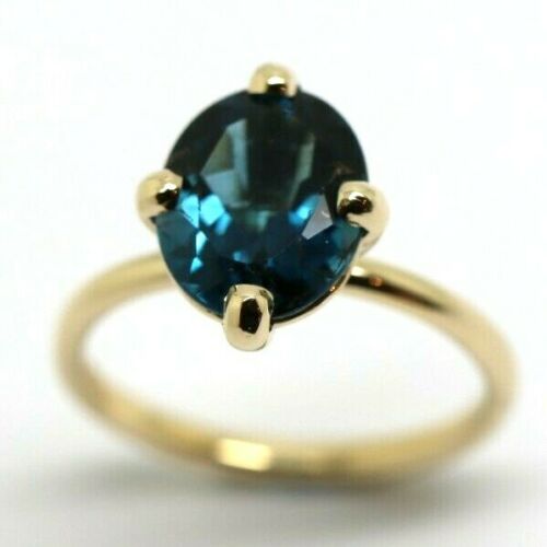 Genuine 9ct Yellow, Rose or White Gold London Blue Topaz Oval Ring