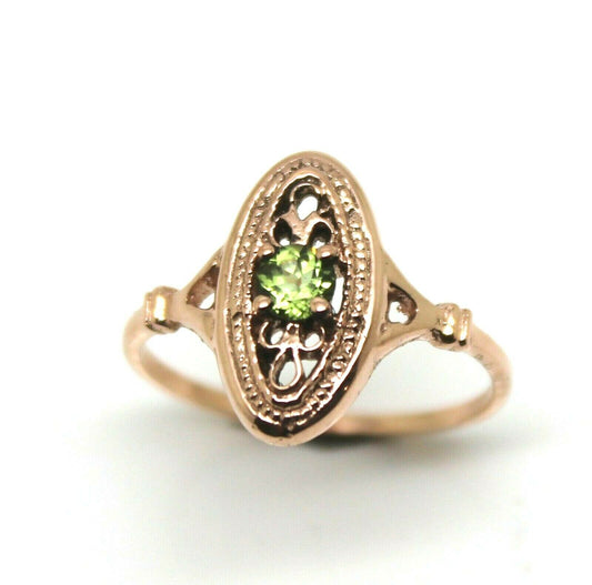 Size N 9ct Yellow, Rose or White Gold Delicate Green Peridot Filigree Ring