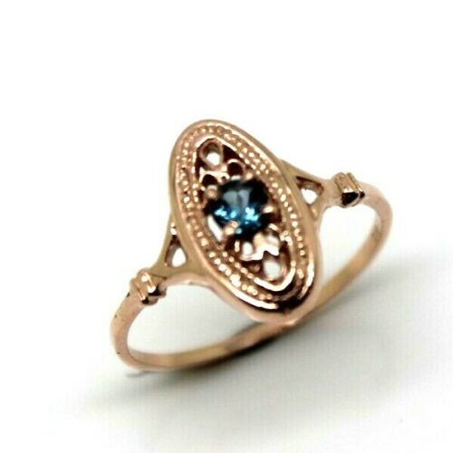 Size Q, Genuine 9ct 9k Rose Gold Delicate Blue Topaz Filigree Ring