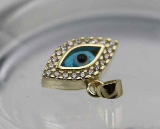 Genuine 9ct Yellow Gold Greek CZ Mati Nazar Lucky Evil Eye Charm / Pendant