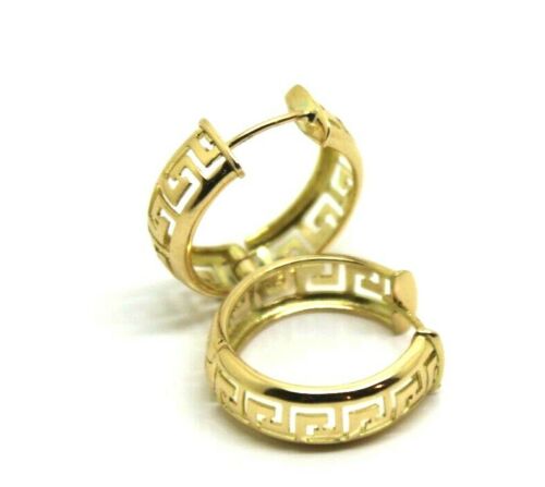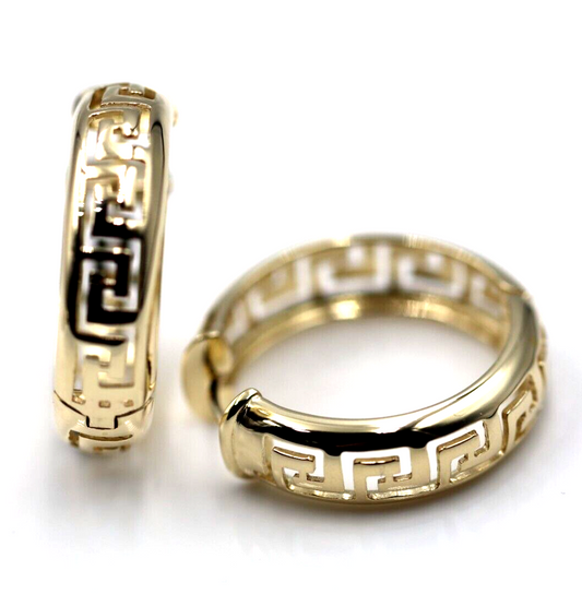 Kaedesigns, Genuine Heavy 14k 14ct Yellow Gold Large Fancy Greek Key Thick Hoop Earrings