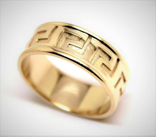 Size 6.25 / M1/2 Kaedesigns Genuine Heavy Solid 14ct Yellow, Rose or White Gold 10mm Wide Greek Key Ring