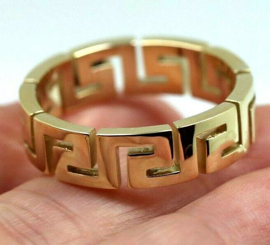 Genuine Size R / 8 5/8 Solid 9ct 9k Heavy Yellow, Rose or White Gold Greek Key Ring