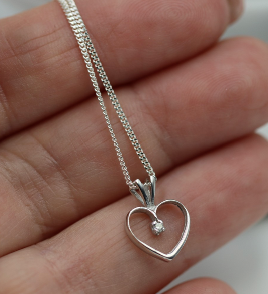 Sterling Silver 925 Diamond Heart Pendant + 46cm Necklace