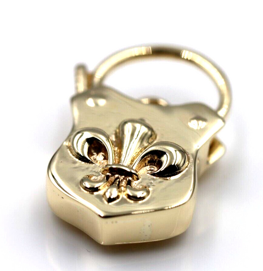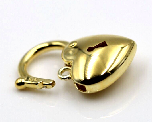 Genuine 9ct 9k Yellow Gold Shield Double Sided Heart Pendant Padlock
