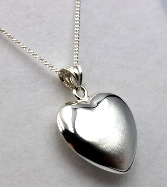 Genuine Sterling Silver 925 Medium Puffy Bubble Heart Pendant + Necklace Chain