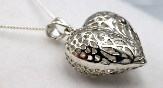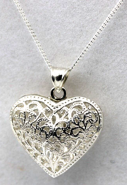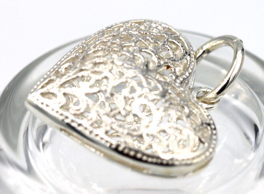 Genuine Sterling Silver Heavy Large Filigree Heart Pendant