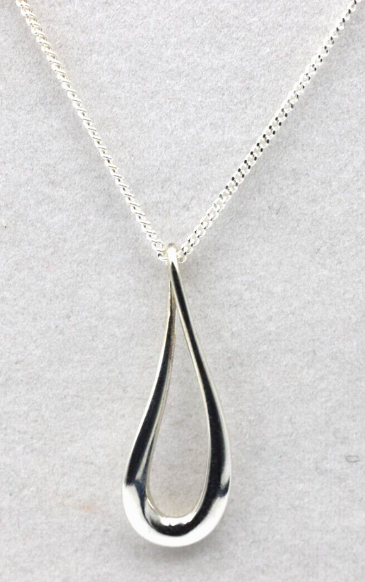 Sterling Silver Teardrop Tear Drop Pendant 55cm Curb Necklace