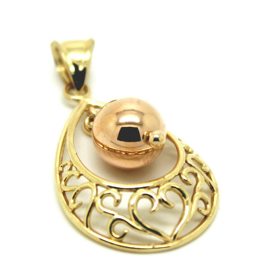 Genuine 9ct 9kt Yellow and Rose Heart & 8mm Ball Gold Filigree Pendant