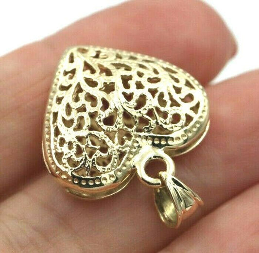 Kaedesigns New Genuine Heavy 9ct Yellow, Rose or White Gold Medium to Large Filigree Heart Pendant