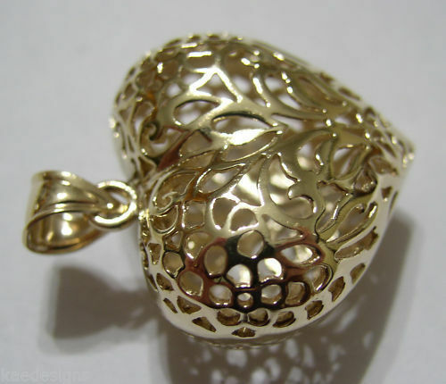 Kaedesigns, Genuine 9ct 9kt Large Yellow, Rose or White Gold Filigree Bubble Heart Pendant