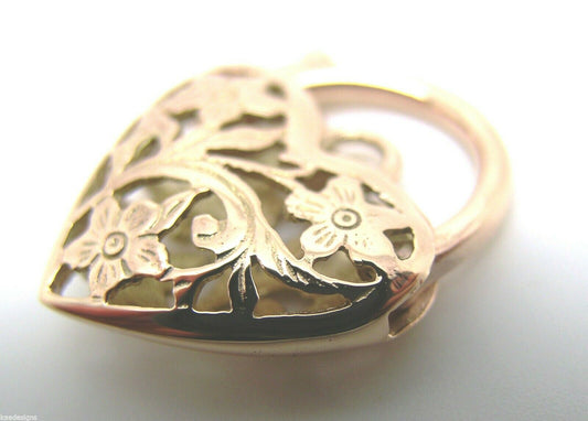 Genuine 15mm 9ct Yellow, Rose or White Gold Engraved Heart Pendant Padlock