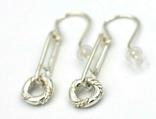 Sterling Silver 925 Drop Paperclip Circle Hook Earrings