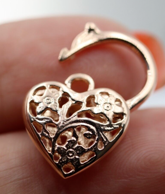 Genuine 11.5mm Sterling Silver 925 Filigree Heart Pendant Padlock
