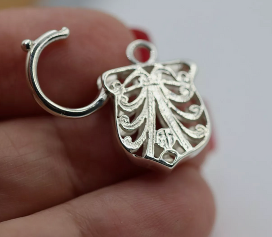 Genuine Sterling Silver Filigree 925 Fancy Filigree Padlock Pendant