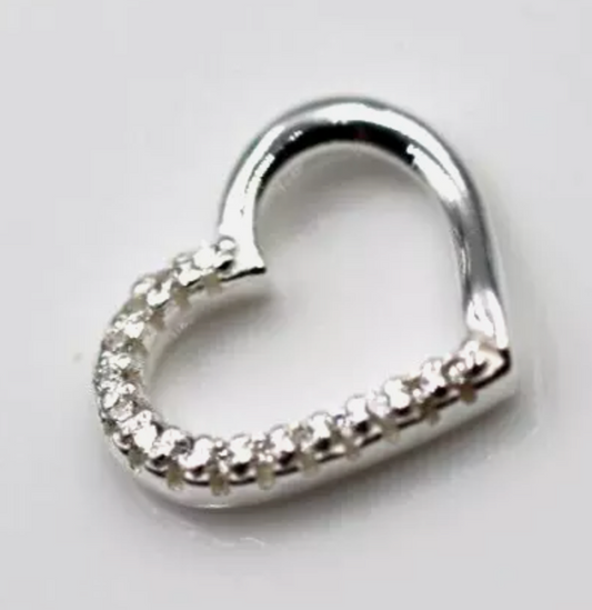 Genuine Sterling Silver 925 Floating Tiny Open Heart CZ Pendant Charm