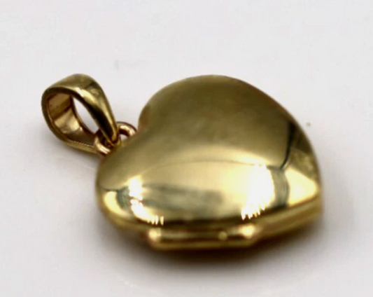 Genuine 9ct 9k Yellow Gold Plain Heart Pendant Locket - fits 2 pics