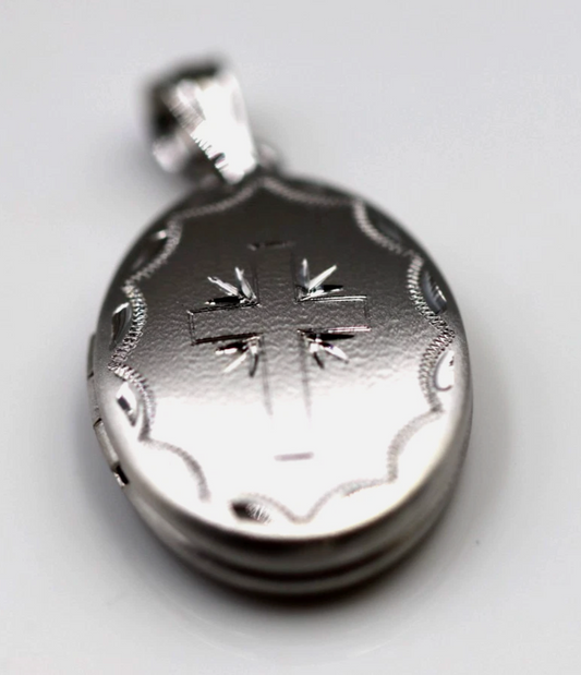 Genuine Sterling Silver 925 Oval Locket Cross Matte Finished