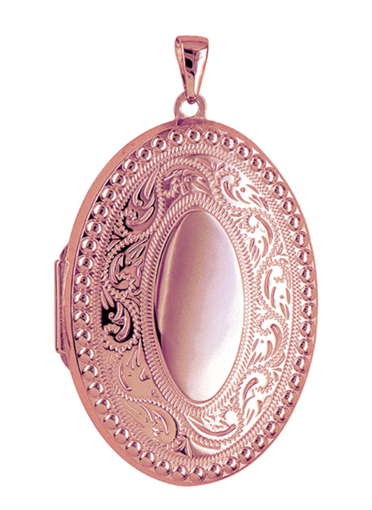 Genuine 9ct Yellow or Rose Gold Engraved Border Oval Locket