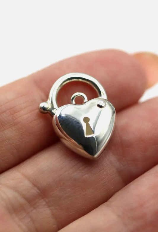Sterling Silver 925 Bubble Heart Small Padlock Pendant 13.5mm