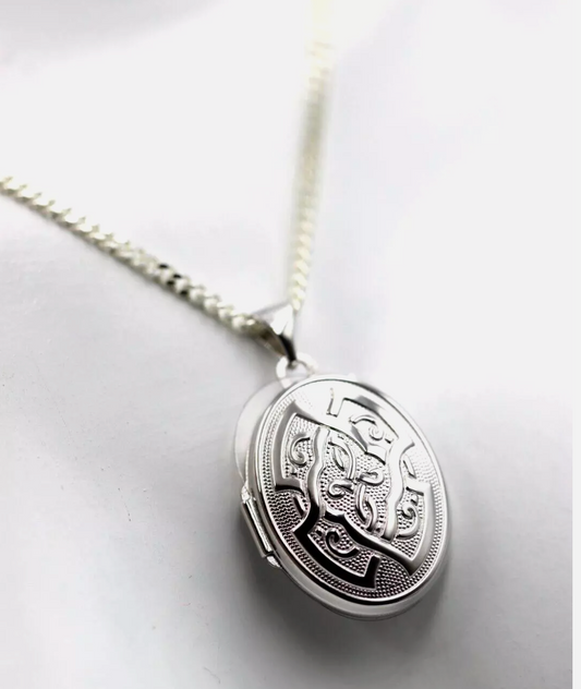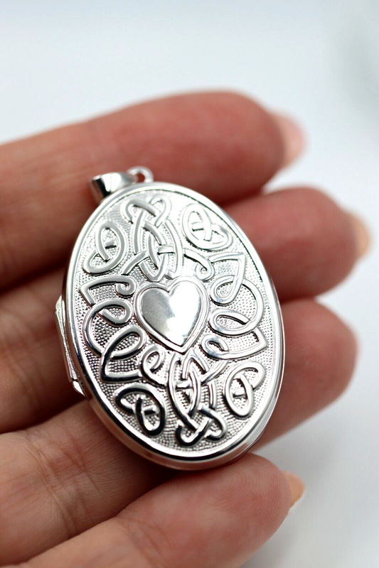 Sterling Silver 925 Oval Celtic Locket Pendant With 2 Photos + Chain Necklace
