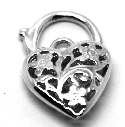 Large Sterling Silver 925 Filigree Heart Padlock Pendant 20mm