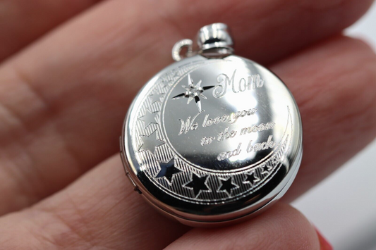 Sterling Silver Diamond Set Engraved Locket Mom for 2 pictures