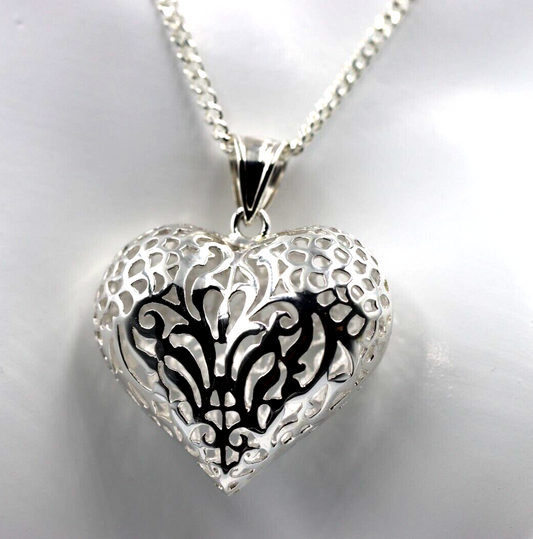 Genuine Sterling Silver 925 Heavy Filigree Heart Locket Pendant